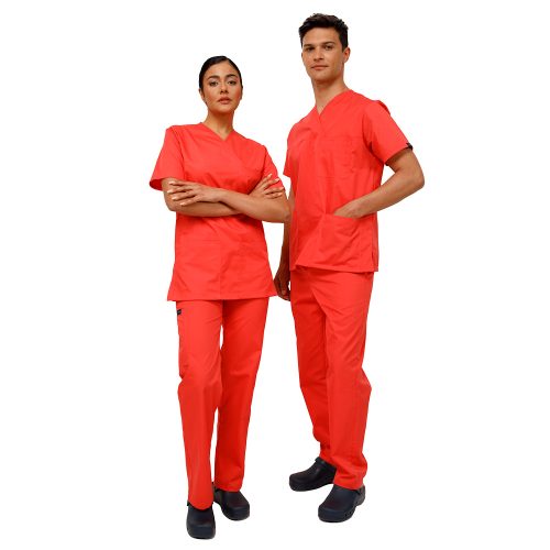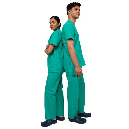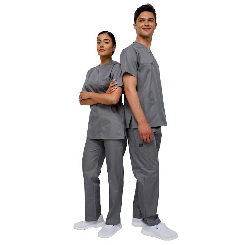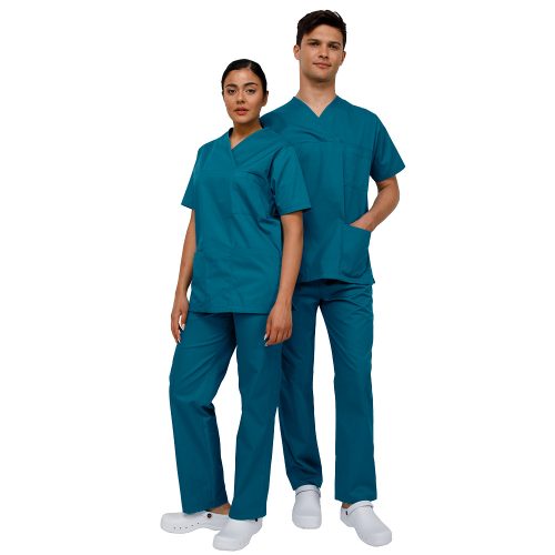 Το unisex κοστούμι εργασίας της Ultima Scrubs αποτελείται από μπλούζα και παντελόνι σε unisex γραμμή, προσφέροντας εργονομία, ανθεκτικότητα και κομψότητα για άνδρες και γυναίκες.